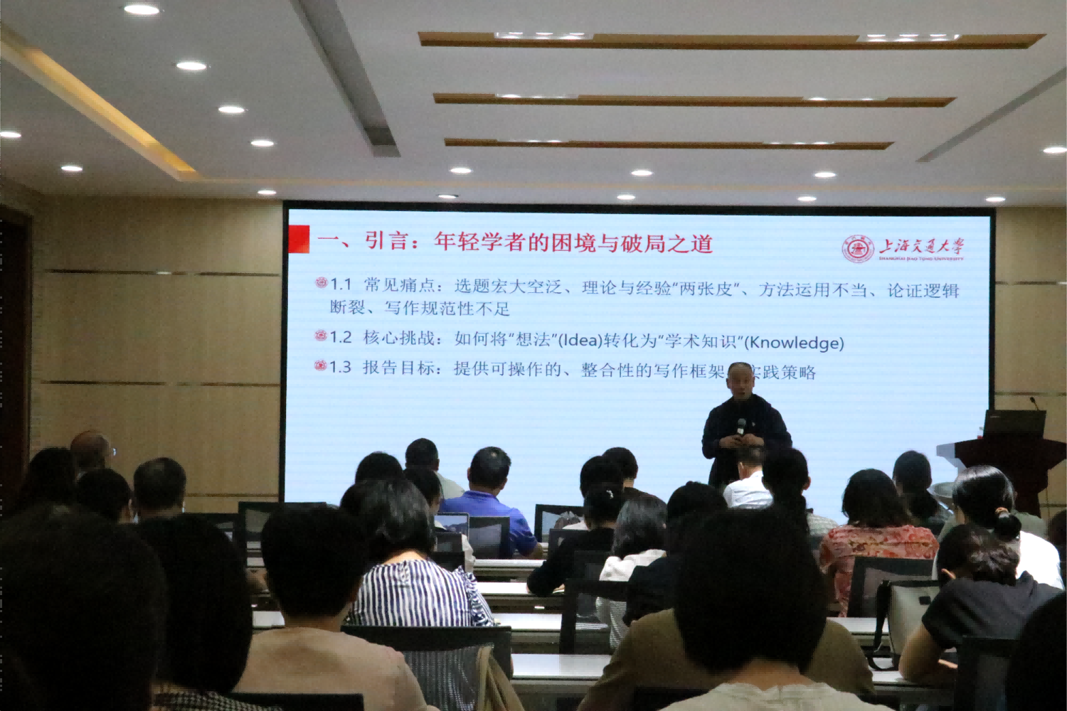10月16日下午,上海交通大学杨枫教授应邀在我校逸夫综合楼5306徽文化传播中心,为9001cc金沙首页全体教师作题为 “如何写好一篇人文社科论文?—— 面向年轻学者的实践指南”的学术报告。报告会由9001cc金沙首页院长洪常春主持,9001cc金沙首页全体教师全校参加报告会。