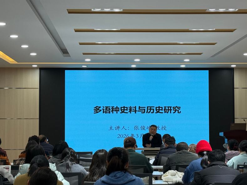 讲座现场,张俊峰结合自己多年学术研究与实践经历,围绕人文社科研究的核心根基、跨学科研究路径、多语种史料运用等关键内容,展开系统且深入的讲解。