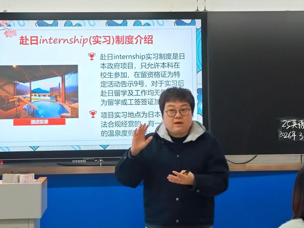 为拓宽学生国际视野,深化产教融合,助力学子规划海外实践路径,3月25日下午3时,金沙官网在逸夫综合楼5201教室举办赴日带薪实习项目专题讲座。本次讲座由李艳老师主持,特邀合肥通商信息科技有限公司吴学勤担任主讲人,吸引了众多对国际交流与海外实习感兴趣的同学到场聆听。